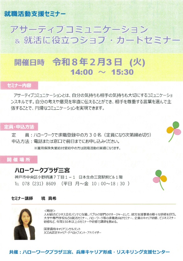 概ね55歳以上の神戸市民または神戸市で就労をご希望の方の「これから」を応援・サポートいたします!