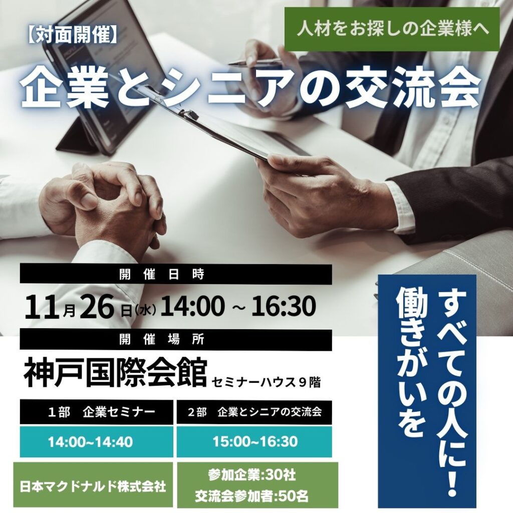 1部の企業セミナーの後、2部では企業とシニアの交流会を開催します。各企業のお席で企業概要や募集求人についてシニアと対話を通じて相互理解を深め、より良いシニア採用につなげていただけます。